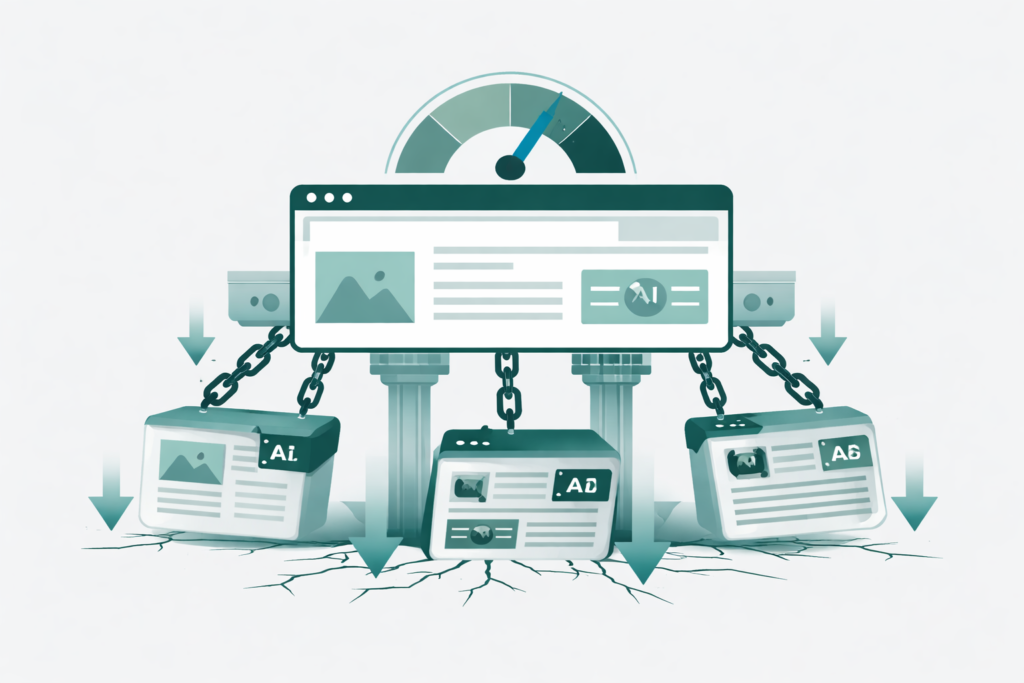 アルゴリズムのアップデートによって検索順位が下落し、集客力が弱まる