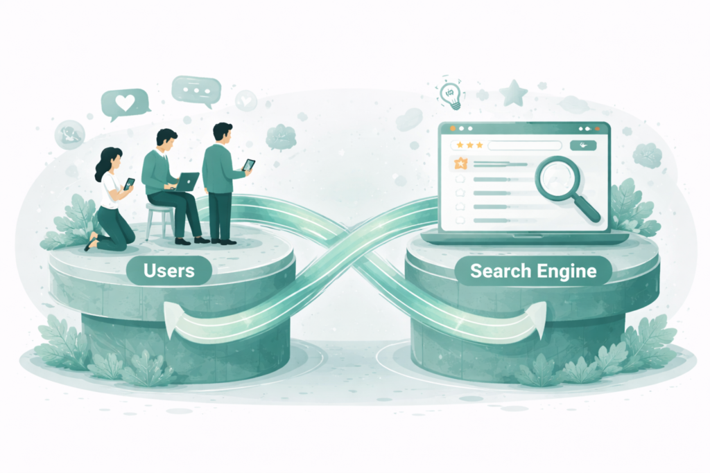 ただ、成果が出るまでに時間がかかるのは取り組みが悪いわけではなく、検索エンジンが検索結果を表示する仕組みにあります。