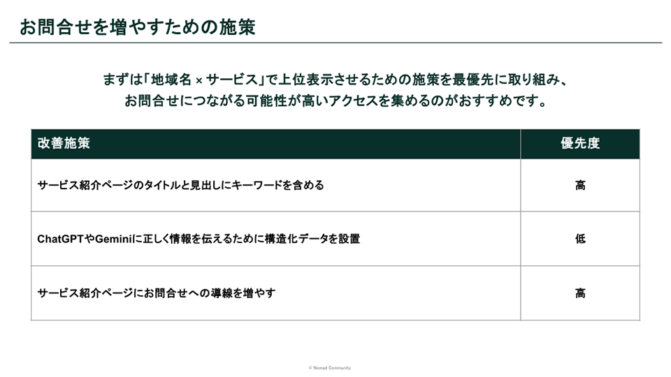 - 見込み客が検索するキーワードで上位表示できていない